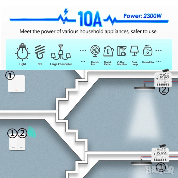 1 - Директно свързване към осветлението или друго електрическо оборудване.