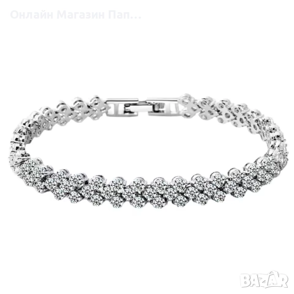 Тази стилна гривна съчетава изчистен дизайн и блясък от кубичен цирконий, инкрустиран по фина верижка от висококачествена сплав.