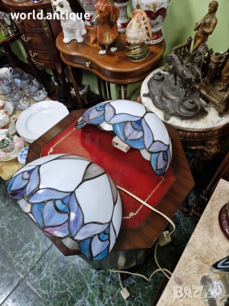 Продавам чифт страхотни антикварни аплици за стена Тифани в перфектно състояние без никакви забележки отлично работещи. Работя дължина 30 см височина 20 см. Прекрасно допълнение към интериора на Вашия дом офис вила ресторант хотел. Работя с всички куриери. Отговарям бързо.