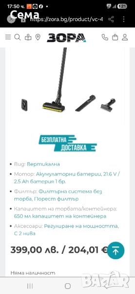 Вертикална прахосмукачка Karcher , снимка 1 - Прахосмукачки - 52322879 Вертикална прахосмукачка Karcher , снимка 2 - Прахосмукачки - 52322879 Вертикална прахосмукачка Karcher , снимка 3 - Прахосмукачки - 52322879 Вертикална прахосмукачка Karcher , снимка 4 - Прахосмукачки - 52322879 1/4