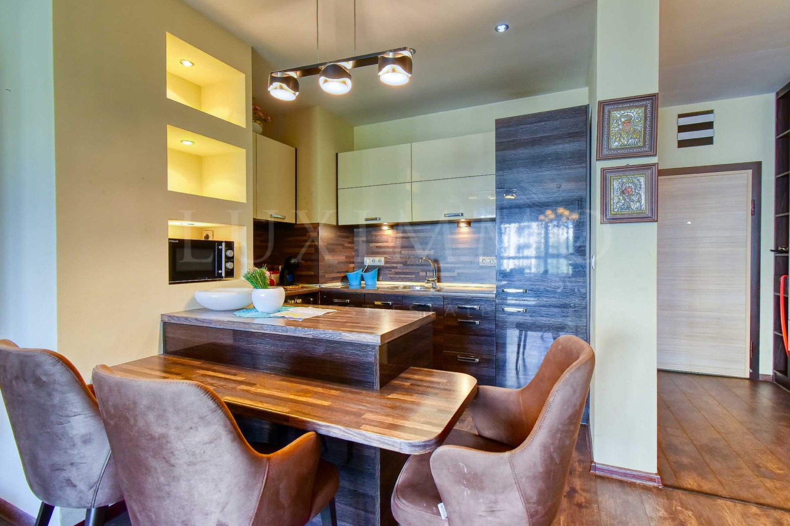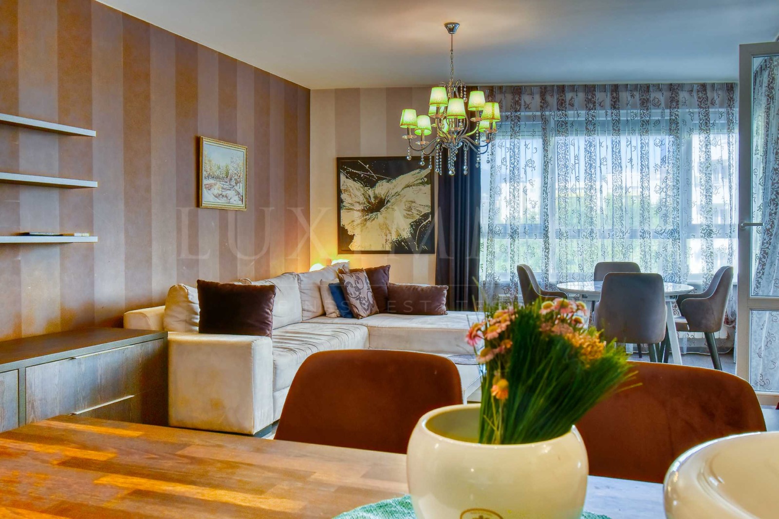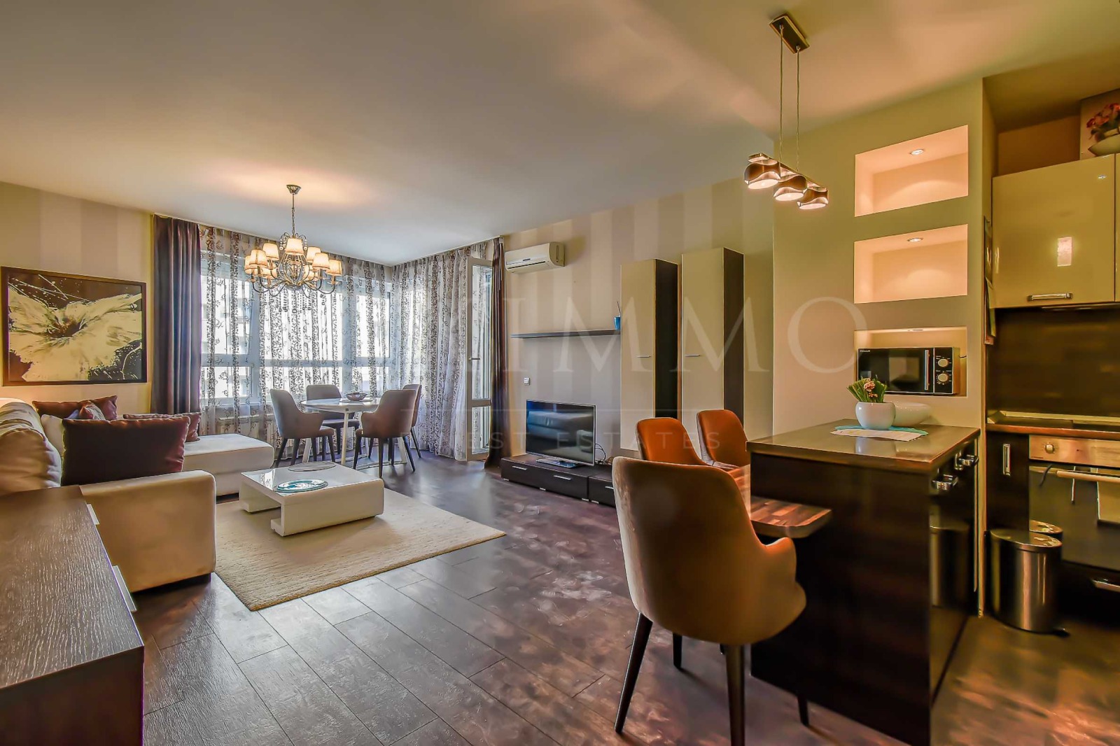 Жилището впечатлява с луксозен интериор, висококачествени материали и функционално разпределение, съчетаващо комфорт, уют и модерен стил. Намира се на изключително комуникативна локация, в близост до Зимния дворец на спорта, големи търговски обекти, супермаркети и спирки на градски транспорт, осигуряващи бърз достъп до всички ключови точки на града.