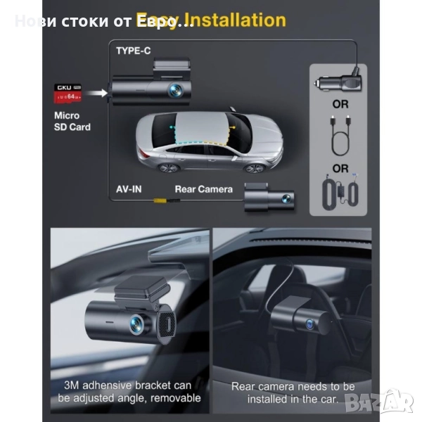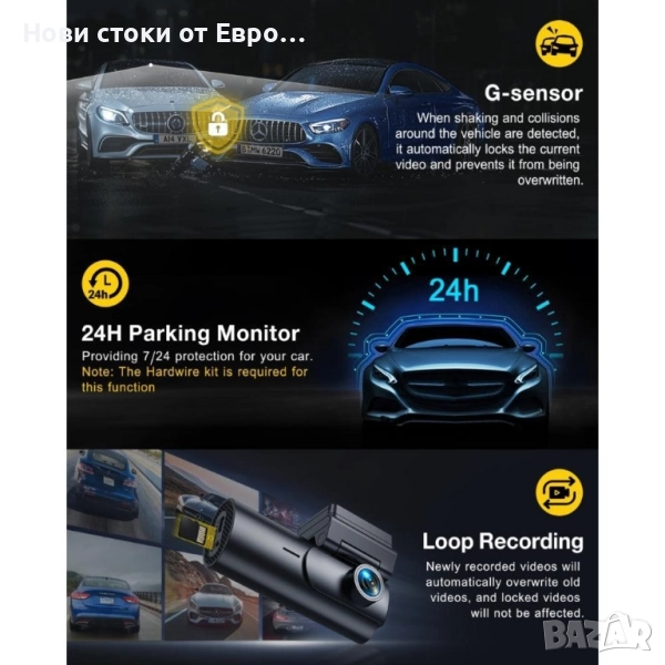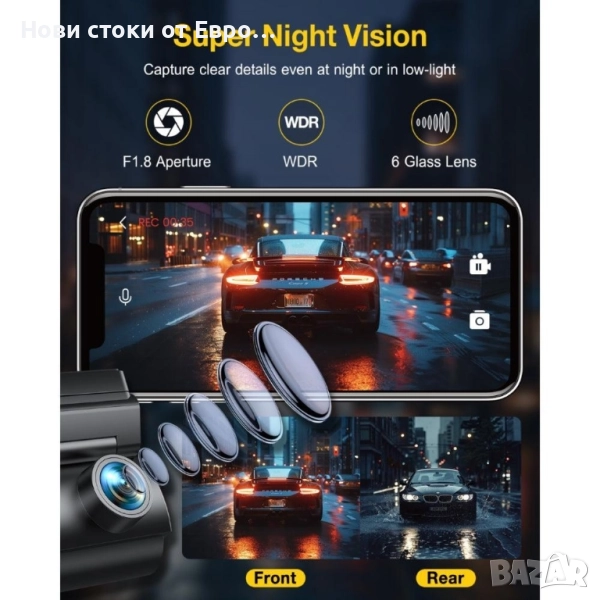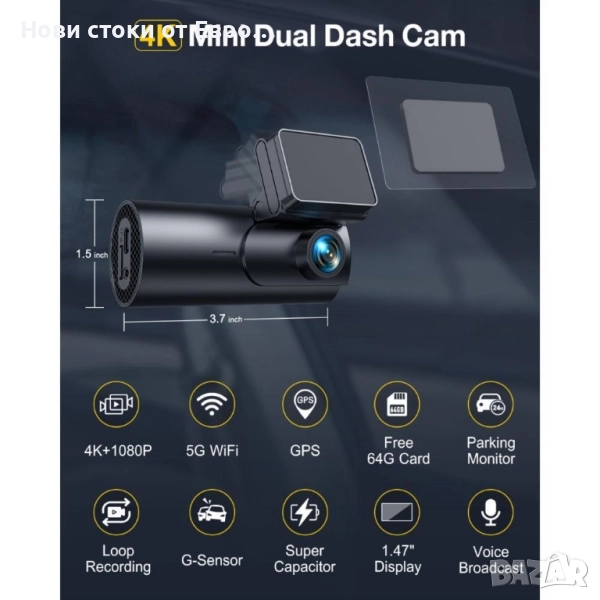 GKU D600Pro 4K WiFi GPS с 1.47-инчов IPS екран, видеорегистратор Ultra HD 4K отпред 5.8GHz WiFi с приложение Вграден GPS Два режима на паркиране 24/48/72 часа 1.47” екран 24-часово наблюдение на паркирането Безпроблемен запис и G-сензор Гласови команди Суперкондензатор