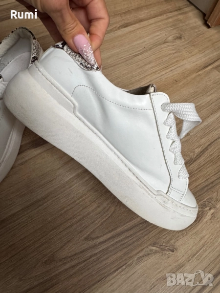 Уникални спортно/елегантни бутикови обувки Италиянска марка изцяло от качествена естествена кожа . Уникален дизайн бели с подметка тип Platform много удобни и здрави като модел стоят уникално по крака . Без забележки носени малко . Като размер са 38,5 н със стелка 24,5 см ! Италиянска марка качествени и скъпи като модел .