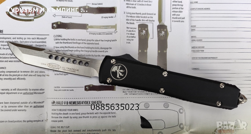 С плъзгащия се бутон можете да отворите или затворите ножа с едно движение на пръста си, голяма подвижна скоба и разбивач за стъкло в края. Безпроблемна работа на механизма и добро качество