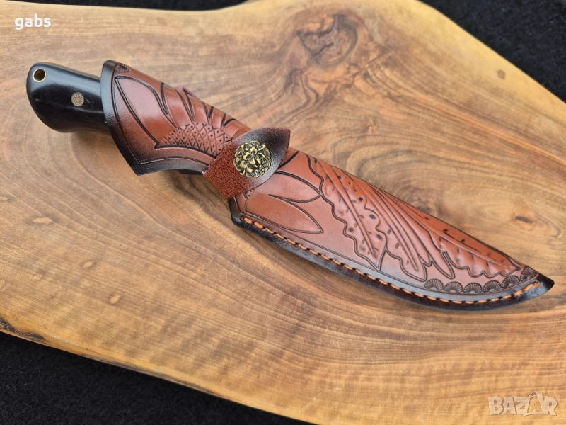 Ръчно изработен ловен нож с кожена кания LN424
