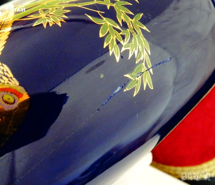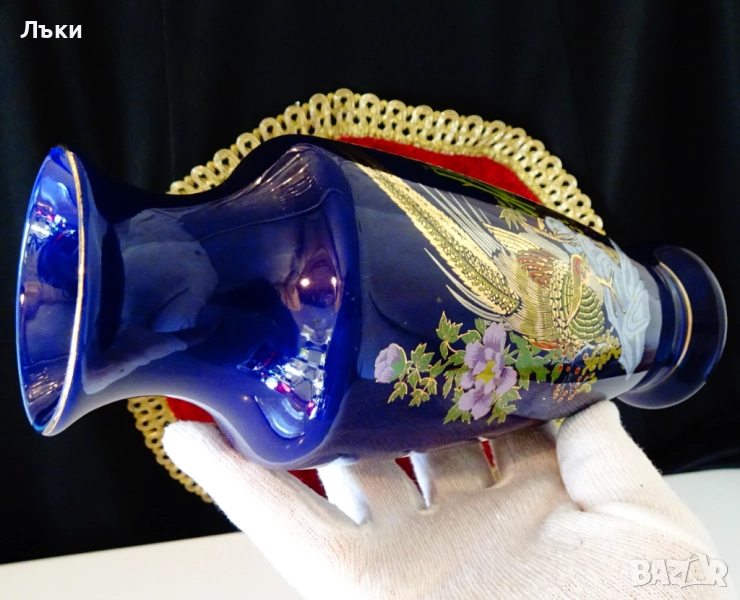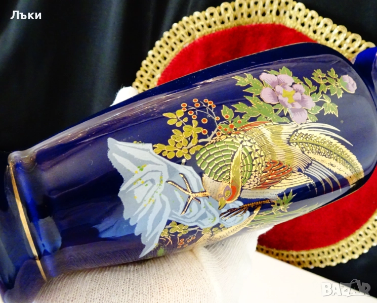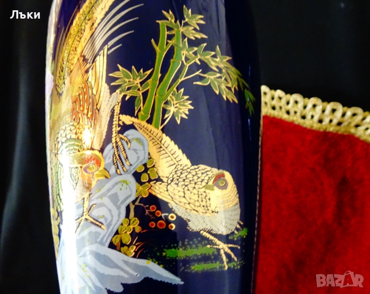 декорирана с двойка японски фазани сред разцъфнали цветя,24 карата злато и
