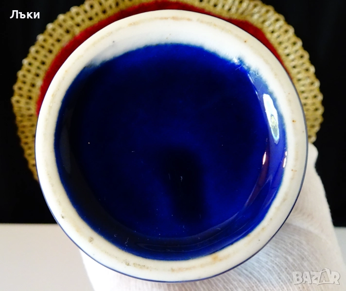 кобалт.ВАЗАТА Е ПУКНАТА,не тече,показано на снимките.Височина 25 см.,диаметър 9