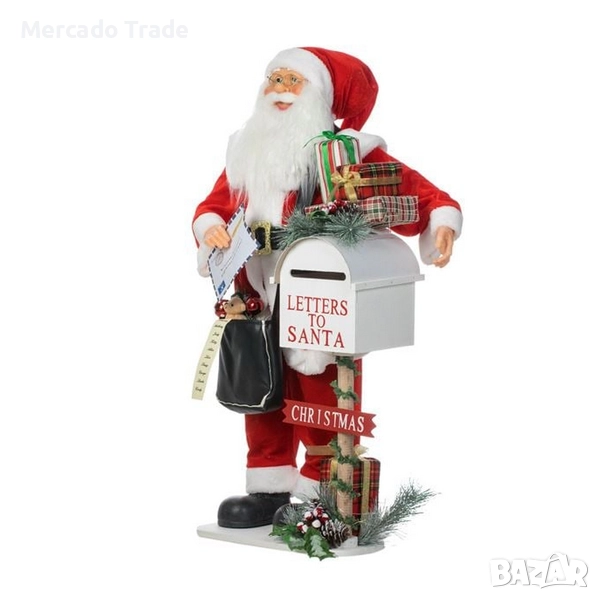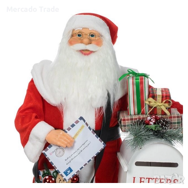 Коледна декоративна реалистична фигура на Дядо Коледа - пощальон с торба, пълна с писма и подаръци. Тя е върху дървена основа и има дървена пощенска кутия с табела. Има музика и LED осветление, можете да избирате между 3 функции: само светлина, светлина и музика и само музика.