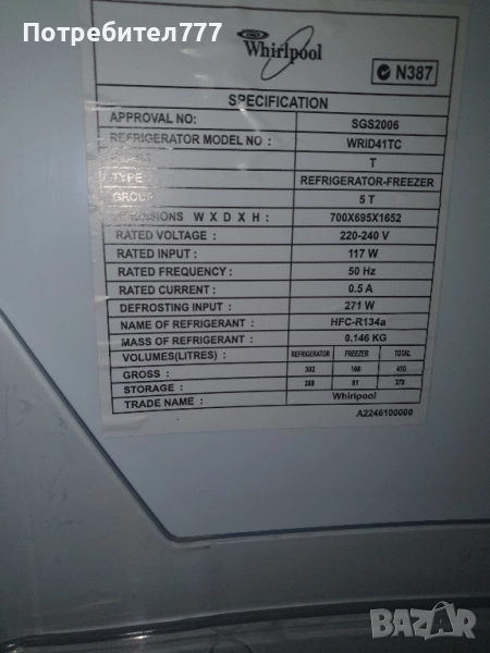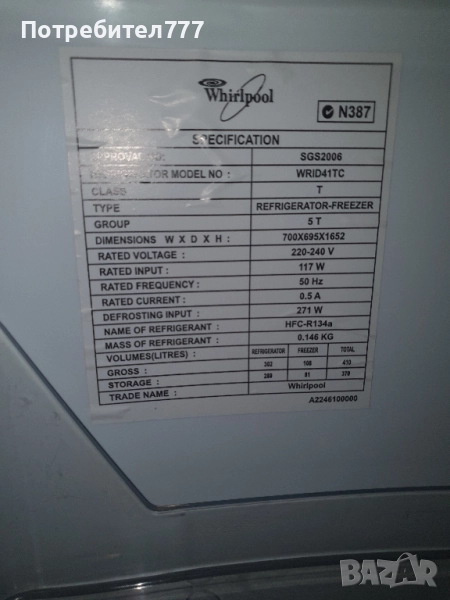 Хладилник Whirlpool → Обява 52325221