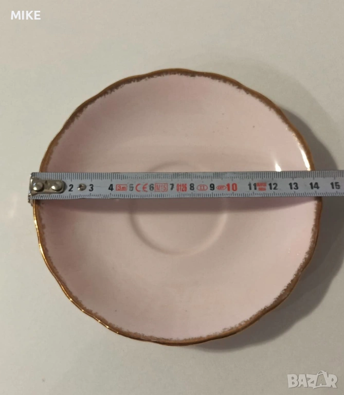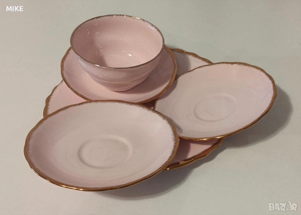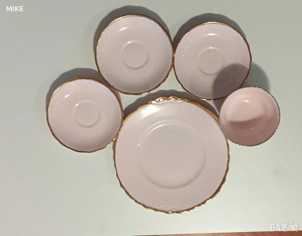 Една голяма и 3 малки чинийки с една чашка или захарничка.