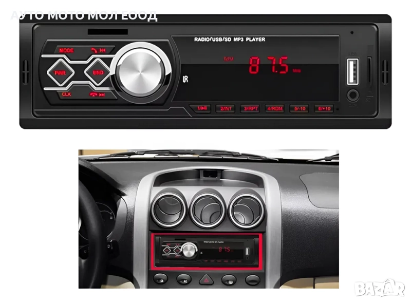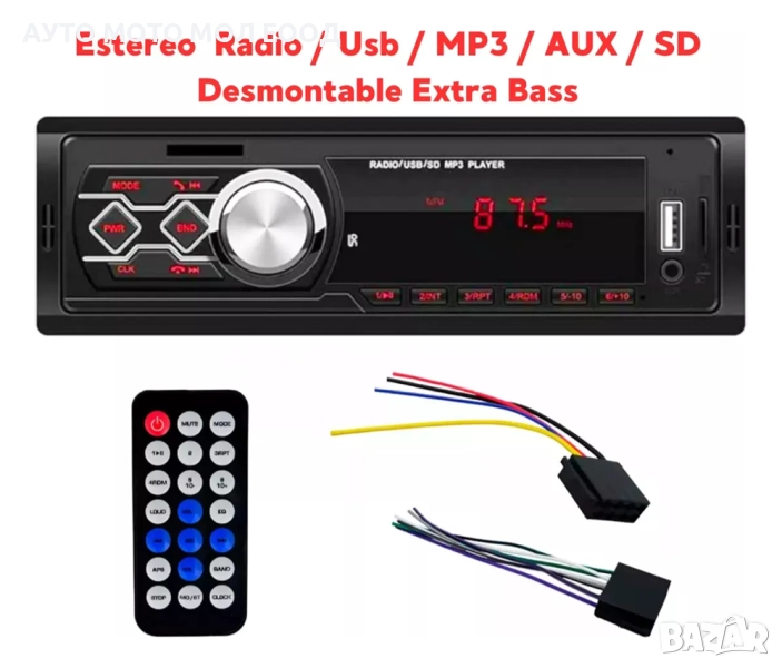 MP3 player за кола Bluetooth USB, SD, AUX, LCD - 4x50w + Дистанционно управление.