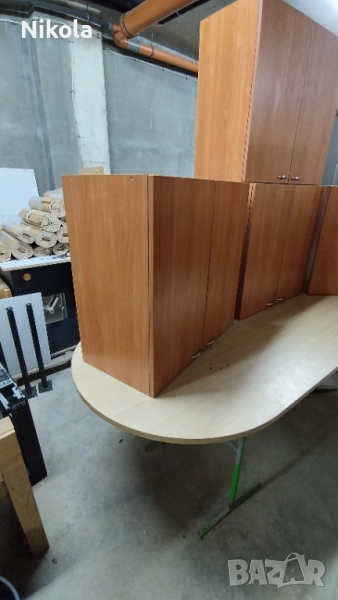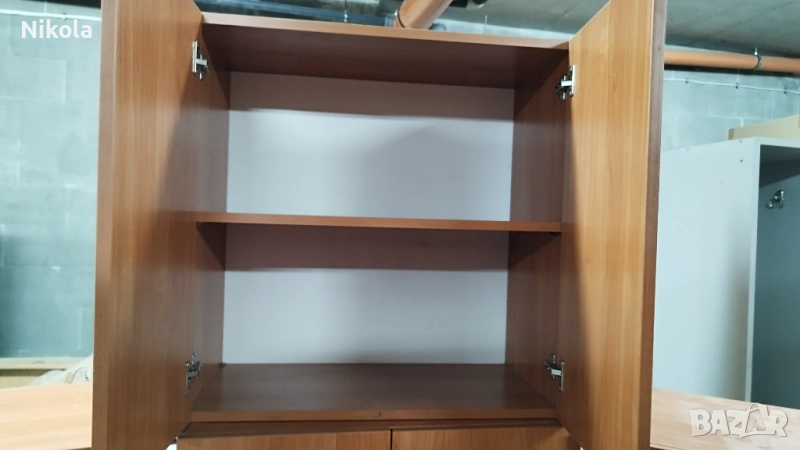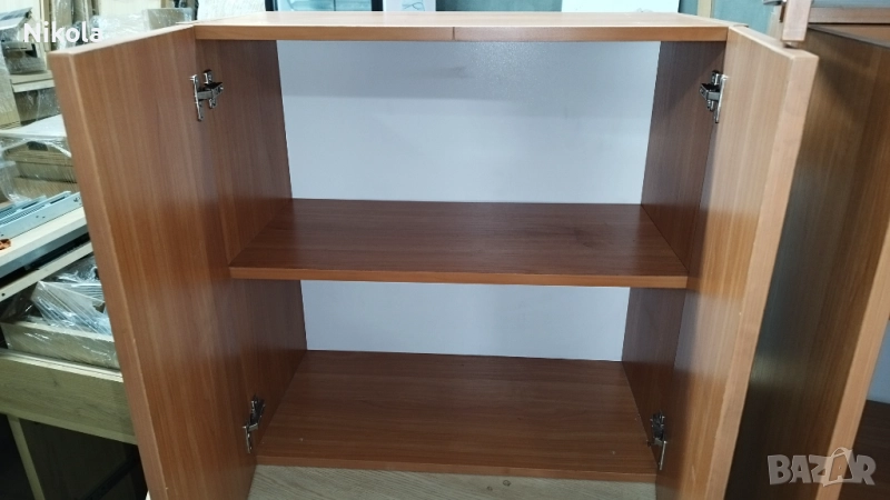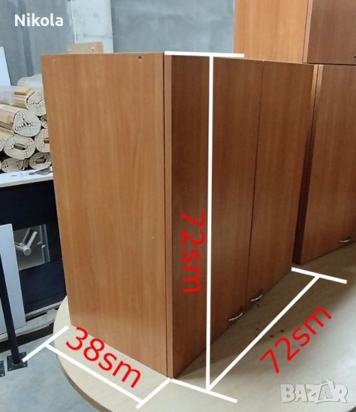 Продавам Кухненски шкафове за стена - горен ред с две врати и два рафта с размер 72x72см и дълбочина 38см. Шкафовете са с две вратички от ПДЧ с панти добре запазен с метални држки. Корпусът е от ПДЧ цвета е червеникаво кафяв - череша. Цената от 110лв е за брой Обща цена за трите е 400лв. За София е вазможен тканспорт + 80лв