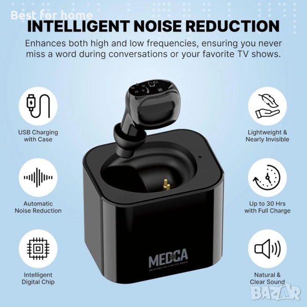 ВИСОКО КАЧЕСТВО: Изпитайте най-съвременна технология с това цифрово устройство MEDca за възрастни и възрастни хора. Това устройство усилва както високите, така и ниските честоти, като гарантира, че никога няма да пропуснете нито дума по време на разговори или любимите си телевизионни предавания. Идеално за възрастни хора, то внася балансирано и естествено изживяване в ежедневието ви. Усъвършенстваната чип технология минимизира изкривяванията и обратната връзка, осигурявайки превъзходно изживяване.