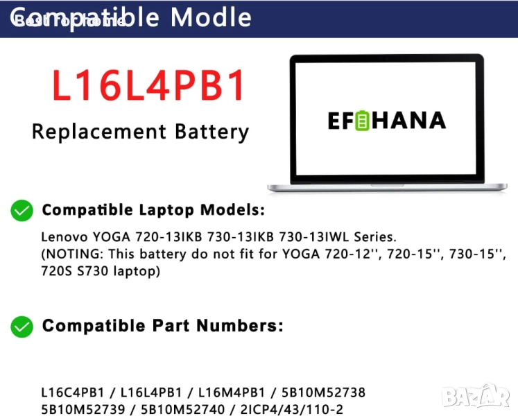 【Спецификации】Модел: L16L4PB1 // Тип батерия: Литиево-йонна // Цвят: Черен // Напрежение: 7.72V // Капацитет: 48Wh 6217mAh // 100% ново от производителя. Висококачествени платки и смарт чип