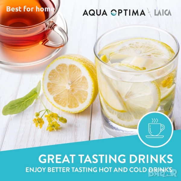 СТРАХОТЕН ВКУС, ЧИСТА ВОДА: Филтрираната чешмяна вода намалява нивата на химикали и примеси, които могат да повлияят на вкуса на вашите напитки. Насладете се на топли и студени напитки с най-добър вкус и по-добър външен вид и вкус на сготвени зеленчуци, когато използвате водния филтър Aqua Optima Evolve+.