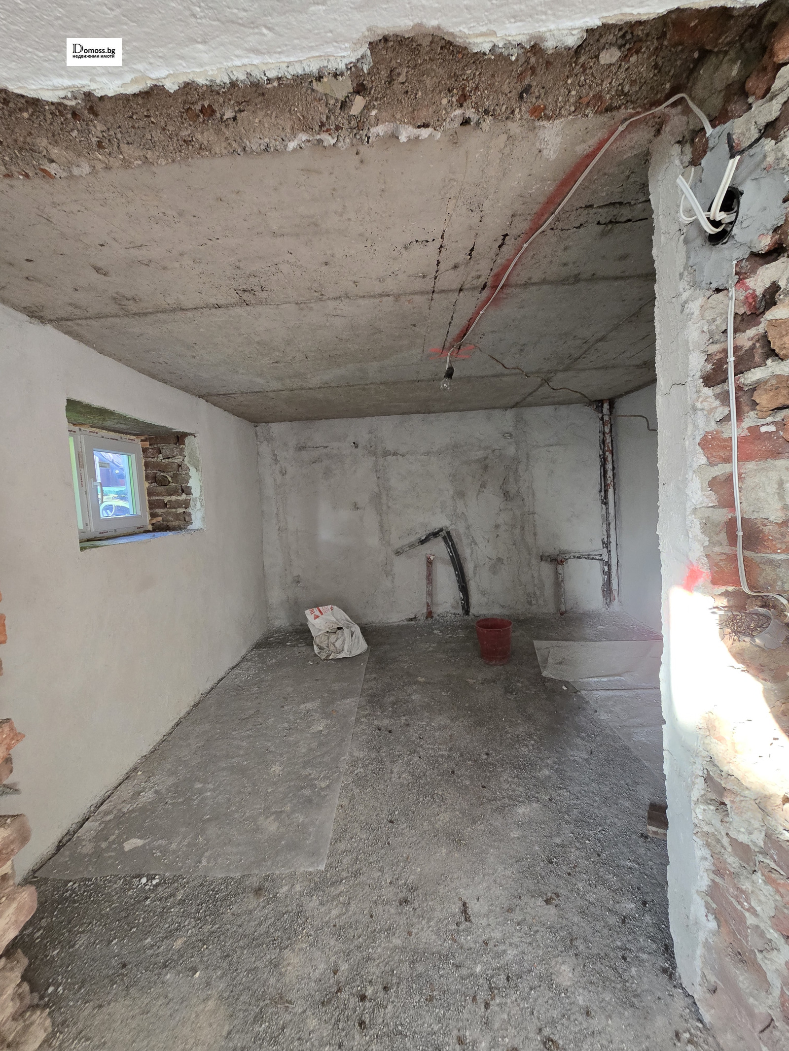 Приземния етаж (мазе) който е завършен до етап на строителство карабина и с прекарани Ел и ВИК инсталации. Има възможност да бъде завършен и да се ползва като двустаен апартамент.