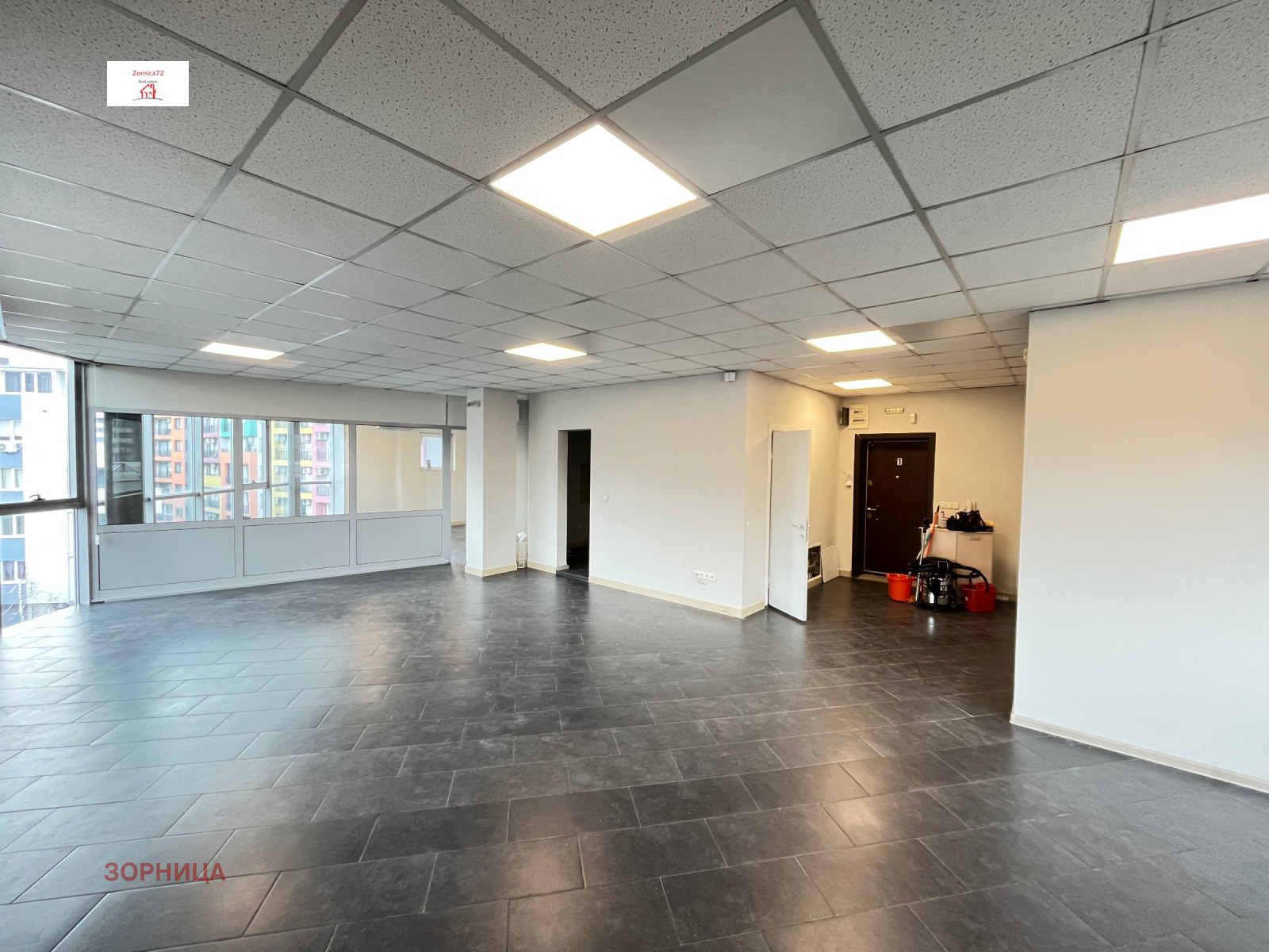 ОГЛЕДИ С КЛЮЧ!ТОП ЛОКАЦИЯ И СГРАДА!ТАКСА ПОДДРЪЖКА Е ВКЛЮЧЕНА В НАЕМА!Представяме Ви луксозен офис напълно готов за наемане на ТОП място в нова изключително добре поддържана ПРЕДСТАВИТЕЛНЯ офис сграда до БАР КОНТЕ, пица Доминос, клуб 35 и в непосредствена близост до спирката на автобус 94. Офисът има следното разпределение: много голяма работна зала, отделна напълно самостоятелна стая, попдходяща за заседателна зала, още едно помещение, преградено чрез светла конструкция, също напълно отделена от голямата зала, санитарно помещение с мивки и огледала и две тоалетни, напълно оборудван кохнунски бокс с възможност за поставяне и на трапезни маси. В помещенията могат да се разположат поне 30 работни места без никакъв проблем и риск от дискомфорт за служителите. Много големи френски прозорци, осигуряващи постоянен поток от светлина. Помещенията са оборудвани с висок клас климатици, радиатори за отопление на ТЕЦ, СОТ и окабеляване. Сградата разполага с 24- часова жива охрана, видеонаблюдение и безупречна поддръжка.Перфектният офис за Вашия бизнес! Офисът е свободен за наемане а огледи се осъществяват в работни дни. Безплатни огледи и професионални консултации! Работим с колеги по всички наши оферти!Ако имате подходящи клиенти, ще се радваме да осъщсетвим огледи и сделка! Елена Цветанова - 0889295954