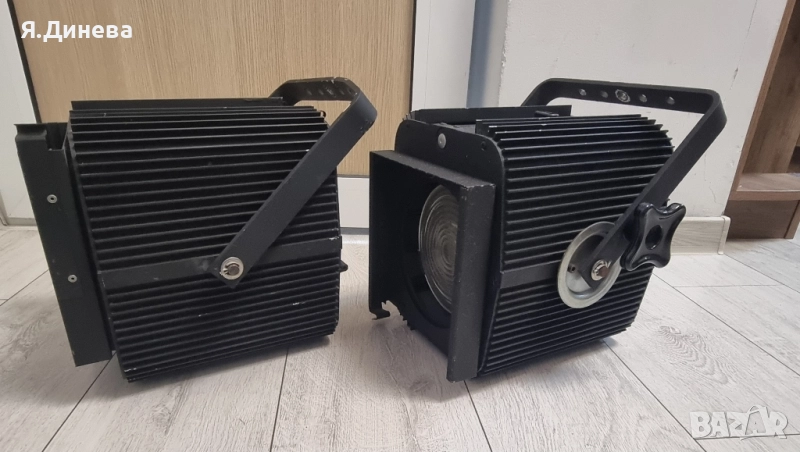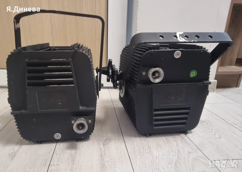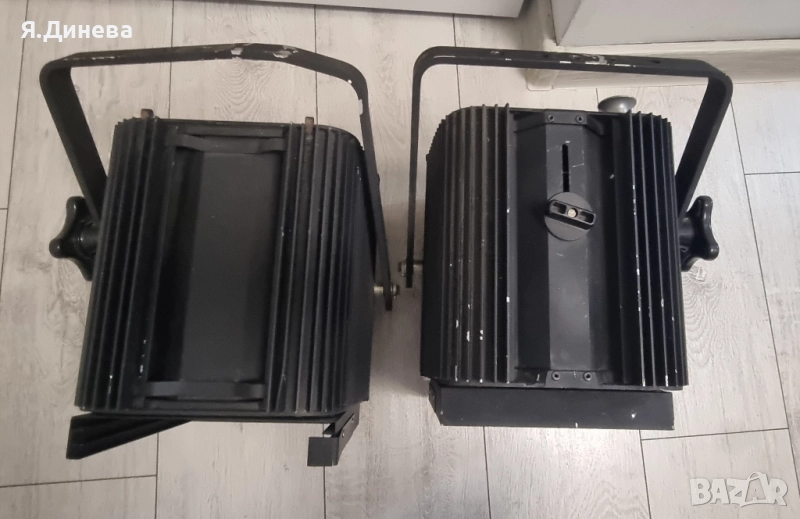 Тези сценични прожектори са в използвано състояние, не са тествани защото им са отразани кабелите. Те имат солидна черна метална конструкция и големи стъклени лещи, които осигуряват ярко и фокусирано осветление. Подходящи са за използване в театри, концертни зали или други сценични пространства. Продават се в комплект внос от Германия.