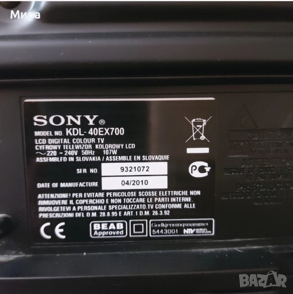 Продавам телевизор Sony KDL - 40EX700, в перфектно състояние. Поради продажба на имот не е необходим.