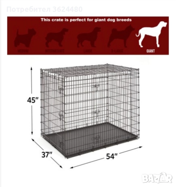 Подходяща за едро големи кучета предлагайки им достатъчно място за изправяне и обръщане.