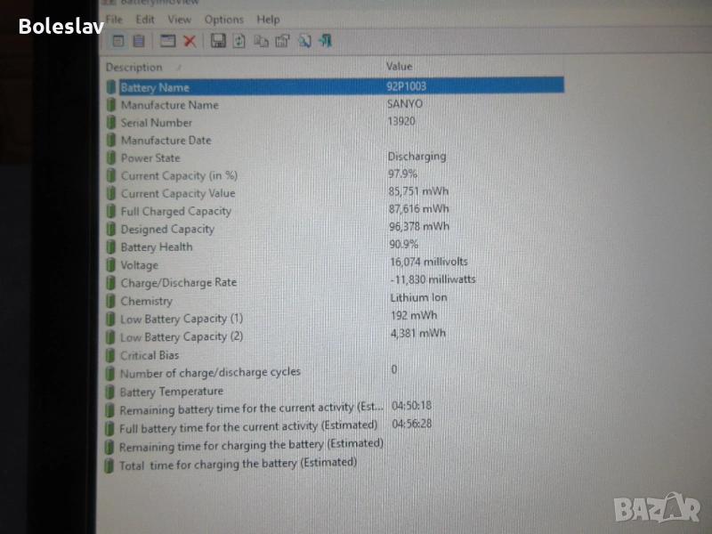 Батерия : Отлична батерия на 91%, гарантира работа между 3 и 5h