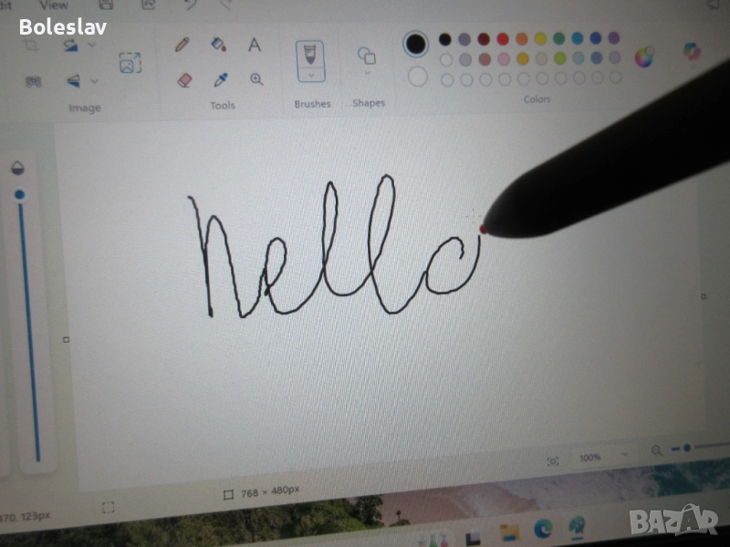 лаптоп с функции на таблет. Дисплеят може да се върти на 180градуса, както и да се управлява с писалката