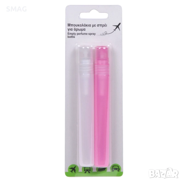 Практичен комплект от 2 спрей бутилки за пътуване, идеални за парфюми, тоник или ароматизирана вода. Компактният им размер и елегантният бяло-розов дизайн ги правят удобни за носене в чанта или ръчен багаж.