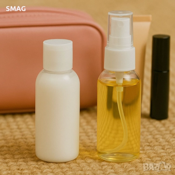 Практичен комплект от две прозрачни шишета за пътуване с вместимост по 60 мл, подходящи за шампоан, балсам, лосион или душ гел. Леките и компактни флакони са идеални за ръчен багаж и спестяват място в куфара.