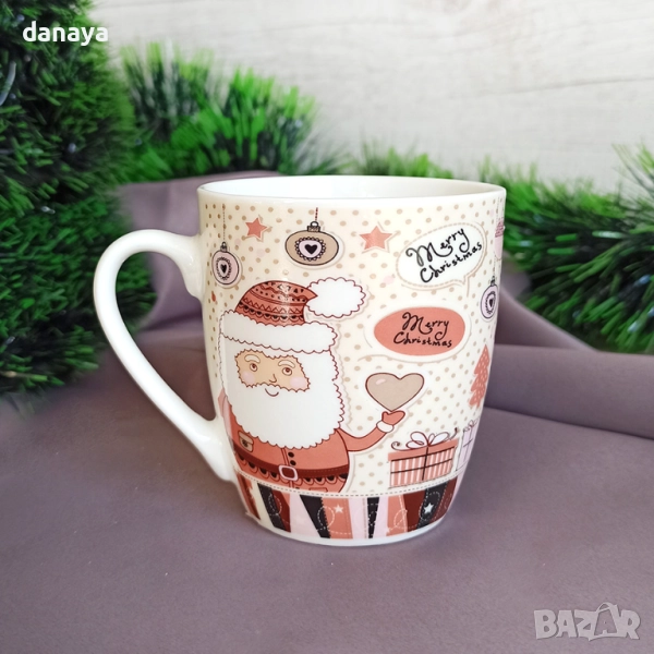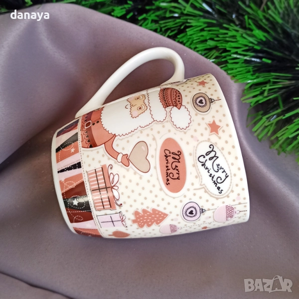 Чашата е изработена от качествена керамика, която задържа топлината на напитката и осигурява комфорт при употреба. Коледният дизайн с надпис Merry Christmas внася уют и радост във всеки дом.