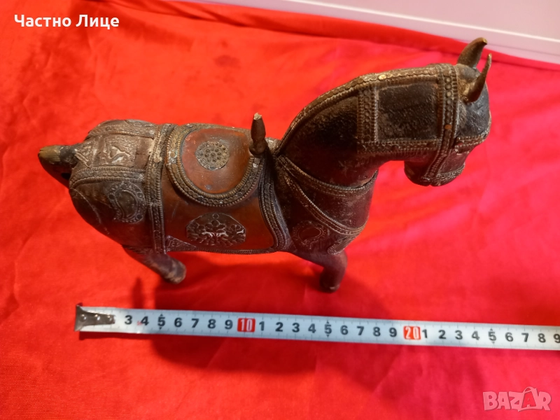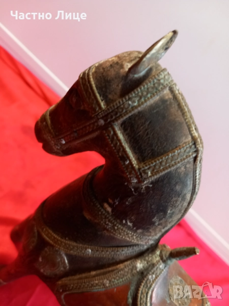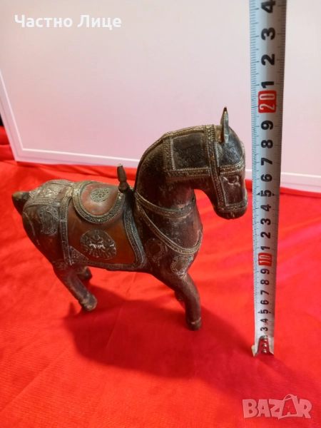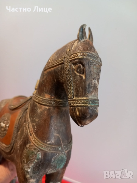Много Красива Старинна Статуетка, Фигура КОН , Стара Ръчна Иработка от Дърво и Бронз.