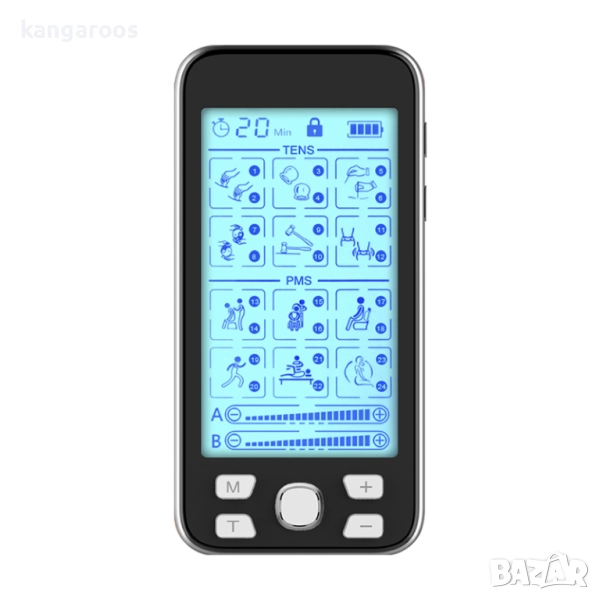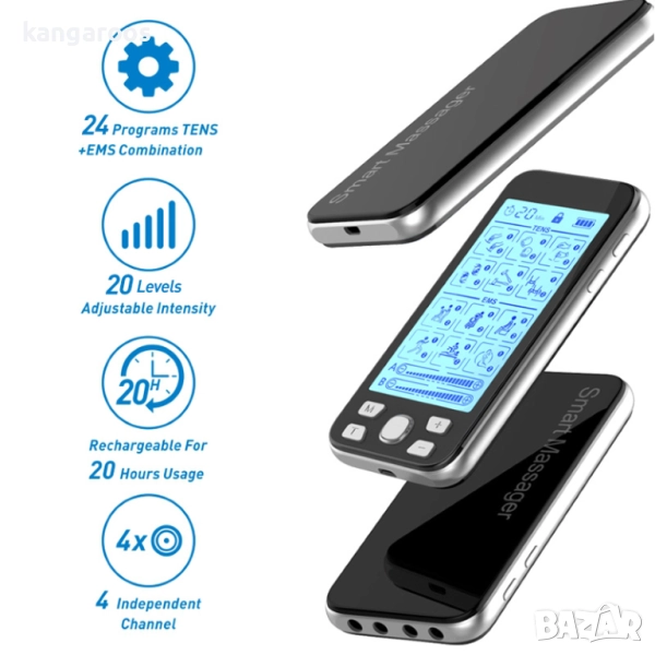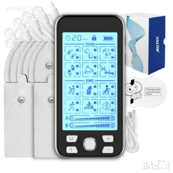 Многофункционален масажор Tens с 24 предварително програмирани режима на масаж за облекчаване на болка и мускули. TENS устройството помага за намаляване на болката и мускулните спазми, причинени от широк спектър от състояния, включително: артрит, менструални болки, болки в коляното, болки във врата, болки в гърба, спортни травми. Използва се и като метод за облекчаване на болката по време на раждане. Мускулният стимулатор Tens е мощно оръжие в борбата ви срещу хроничната болка.