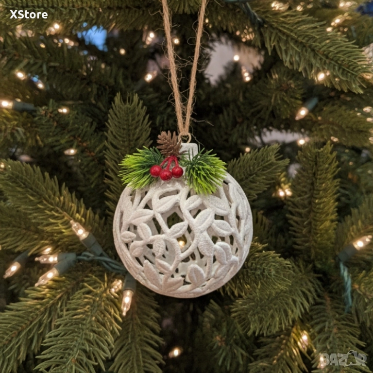 Коледни играчки за елха „Winter White Elegance“ – луксозни висящи декорации с натурален завършек