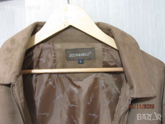 Предлагам ново велурено яке с цвят светло кафяв, размер - L. Метален цип.