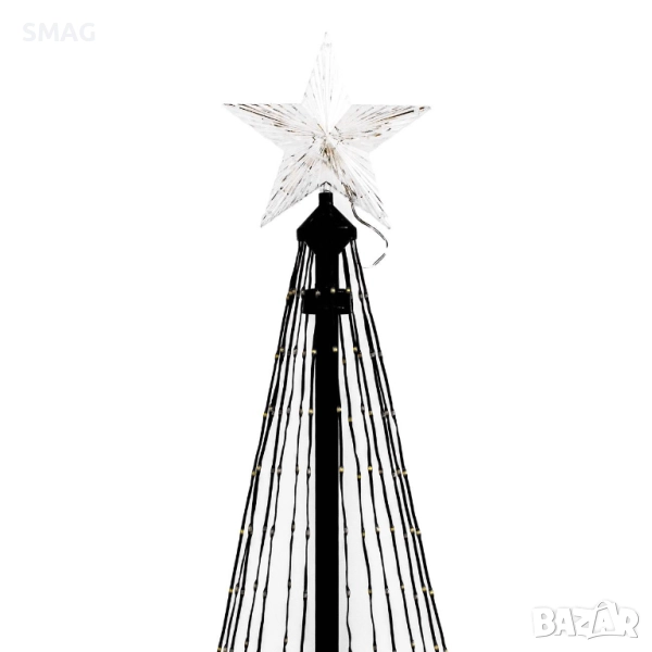 Елегантна черна коледна елха с форма на конус, украсена с 627 вградени топло бели LED светлини. Модерен и изчистен дизайн, който придава стил и уют на празничната декорация. Подходяща както за дома, така и за офис или търговски пространства. Лесна за сглобяване и стабилна конструкция.