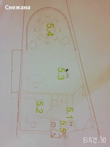 Продава се заедно с мебелите – бюра, маси, етажерки и под. (без голямата маса в търговската зала); има и разл. офис-техника – при интерес може да бъде предложена.