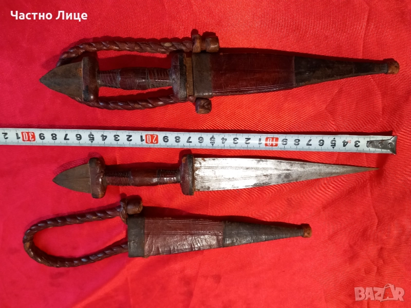 Комплект от Два Броя Стари Африкански Туарегски Ками. Кания и Дръжка от Кожа Острието е без язви и нараняване.