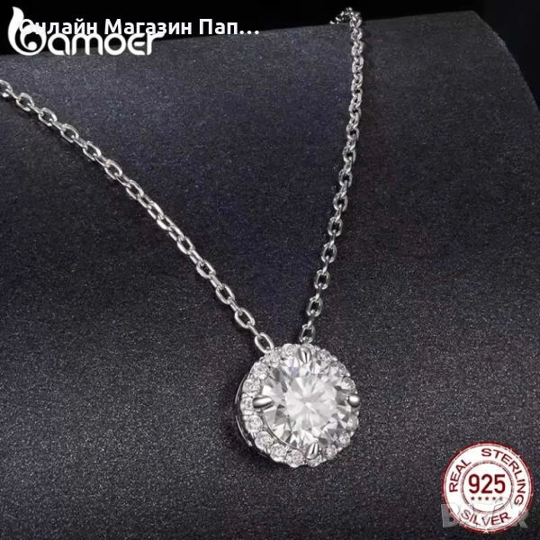 истинския блясък с BAMOER 925 Сребърно Хало Колие с Диамант