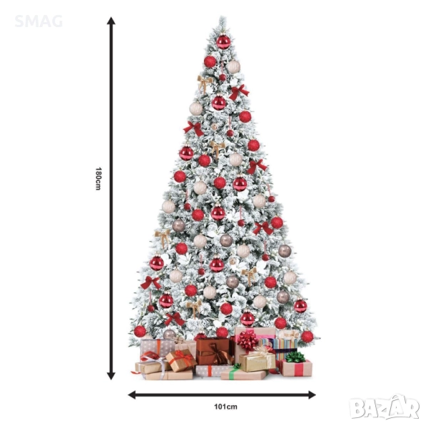 Класическа зелена коледна елха със заснежена корона и 521 клона, която съчетава естествена визия и зимен чар. Изработена от PVC и метал за стабилност и лесен монтаж. Подходяща за декорация на дом, офис или търговски обект – създава уют и празнично настроение.