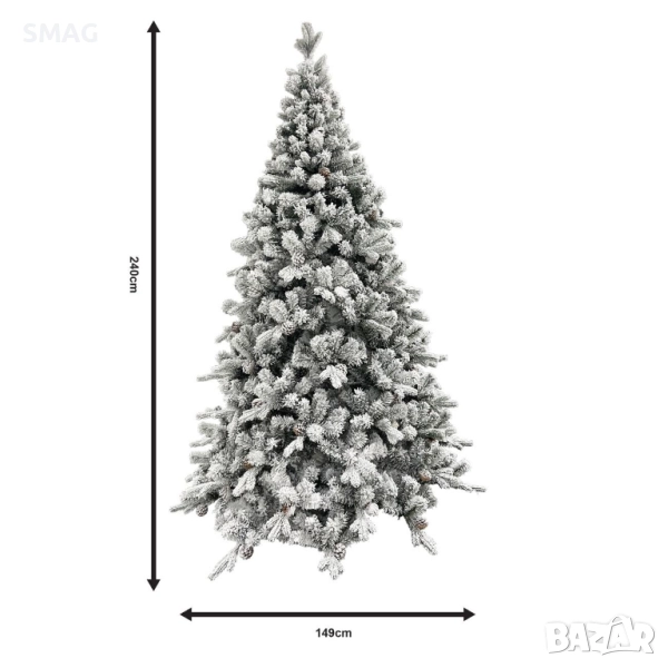 Впечатляваща коледна елха със заснежен ефект и 1467 клона, която създава усещане за истинска зимна приказка. Гъстата зеленина с нежно побеляване придава естествен и празничен вид. Стабилната метална конструкция и лесният монтаж я правят идеален избор за големи пространства, домове или търговски обекти.