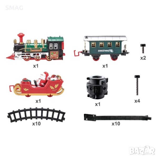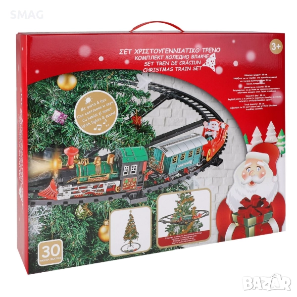 Празничен коледен влак с релси, светлини и музика, който оживява около елхата и създава магическа атмосфера. Комплектът включва 30 части с регулируеми релси (диаметър 88 см, обиколка 270 см), които могат да се поставят както около елхата, така и на пода. Идеален за семейни празници и забавления с деца.
