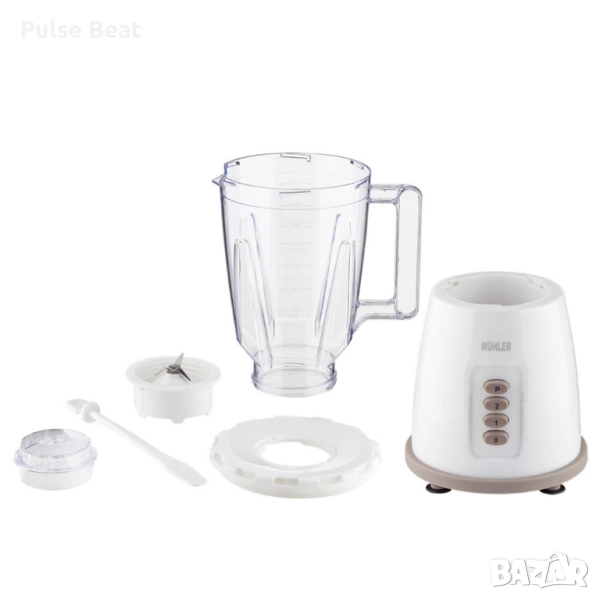 С блендер Muhler MB-155 ще можете лесно да приготвяте вкусни и здравословни ястия за себе си и вашето семейство. Неговата комбинация от мощност, вместимост и удобство го прави незаменим помощник във всяка кухня. Мощност: 500W; Напрежение: 220-240V / 50-60 Hz; Обем на каната: 1.5 литра; Брой работни скорости: 2 скорости + пулс функция; Ножове: 4 блендиращи ножа от неръждаема стомана; Крачета: Неплъзгащи се; Отвор за добавяне на съставки: Да; Място за прибиране на кабела: Да.