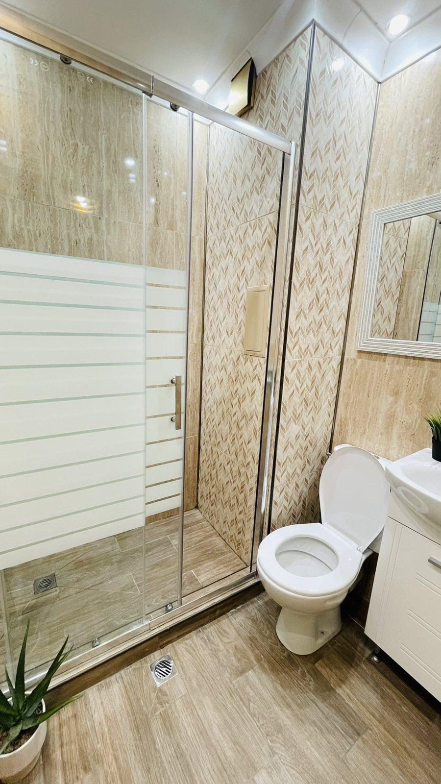 Сградата е с Акт 16 от 2021г. Имотът е разположен на шести жилищен етаж и разполага с площ от 72 кв.м. Разпределението както следва е: хол с кухненски бокс, спалня, баня с тоалетна и тераса. Изложението е югоизток. Отоплението е на газ. Жилището се продава така както го виждате на снимки напълно обзаведено и оборудвано с всичко необходимо. Към имота има мазе и възможност за покупка на паркомясто на допълнителна цена.
