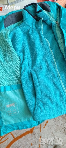 Детско ски яке за момиче, с поларен суичър към него. Ръст 140 см. Дължина 55 см. Дължина на ръкава от вратната извивка 59 см. Ширина 88 см. Гръдна обиколка 90 см. За София може лично предаване.