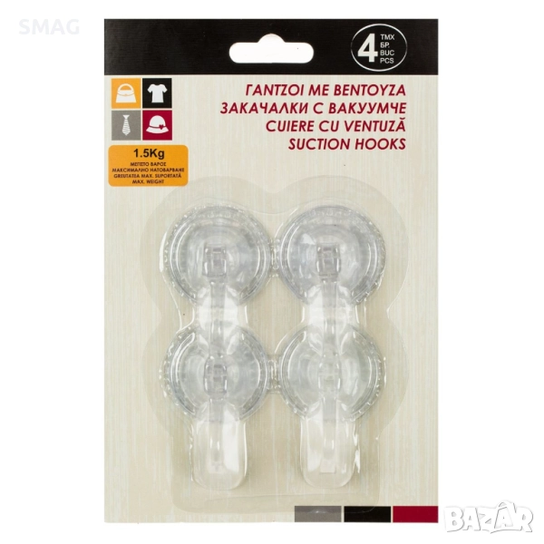 Практичен комплект от прозрачни вакуумни закачалки, подходящи за баня, кухня или коридор. Монтират се лесно без пробиване и прилепват стабилно към гладки повърхности като плочки, стъкло или метал. Идеални за закачане на леки предмети, кърпи или аксесоари.