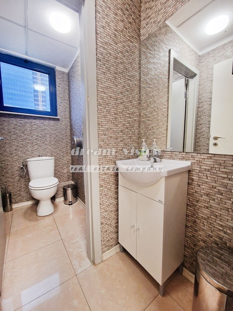 ДРИЙМ ВИЖЪН НЕДВИЖИМИ ИМОТИ Отдава под наем офис в луксозна офис сграда разположена в близост до Съдебната палата и църквата Света Неделя. В непосредствена близост има метростанция, множество спирки на градския транспорт, държавни учреждения, ресторанти, помещения от обслужващия сектор. Състои се от антре, просторно помещение тип open space, отделен голям кабинет/ заседателна зала, кухненски бокс, тоалетна, сървърно помещение. Възможност за преустройства.Луксозни общи части,настилки гранит. Контрол на достъпа на всеки етаж, видеонаблюдение, жива охрана, VRV система за централна климатизация. Оферта в агенцията 11218. Всички наши обяви ги работим с колеги. Още наши оферти може да намерите на www. dreamvision. bg. Телефони за връзка: 02/421 96 35 ; 0886 13 22 91 Димитър Георгиев.