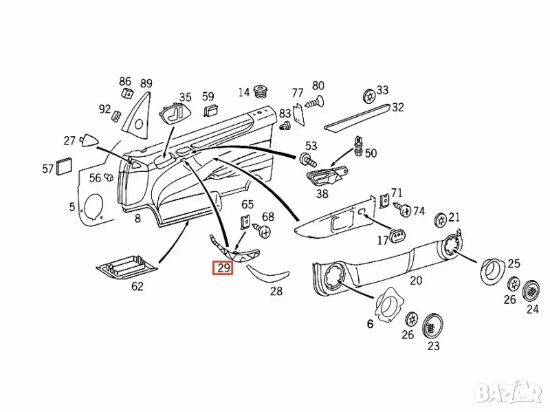 Вътрешна дръжка на врата Mercedes-Benz W208 (лява или дясна) A2088100554 / A2088100654