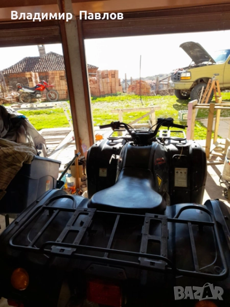 Атв на малко километри, бензин, 4 тактов, карбуратор, 4х4 или задно, блокаж на диференциала. Намира се в село Емона, с договор, взимане от място. Стартер и ръчна манивела. Няма талон и номера за каране по пътищата. Причина за продажба, нова играчка.