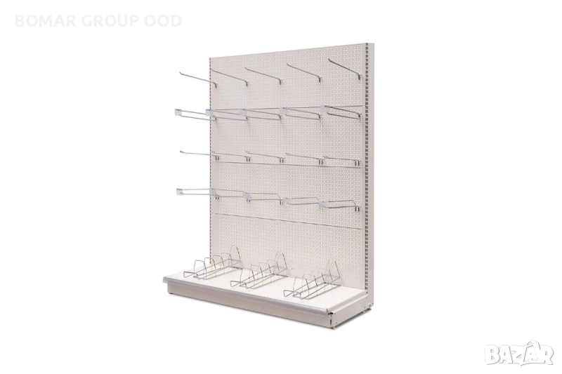 Фирма Бомар Груп ООД предлага стелажи за магазини и складове с различни размери,и аксесоари.