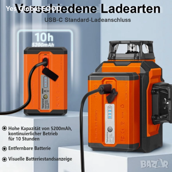 Лазерният нивелир TakamineTech 3x360 е професионален 3D инструмент с 12 зелени линии, осигуряващ изключителна точност при строителни и монтажни дейности. Благодарение на функцията за самонивелиране и включеното дистанционно управление, устройството позволява прецизна работа дори от разстояние. С вградена 5200 mAh литиева батерия предлага дълго време на работа, а магнитната въртяща се стойка осигурява лесно закрепване върху метални повърхности. Подходящ за строителство, монтаж на мебели, окачване на картини и други приложения.