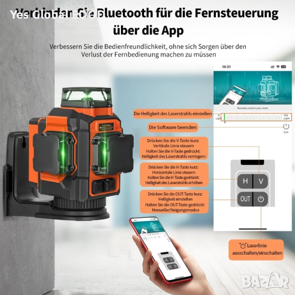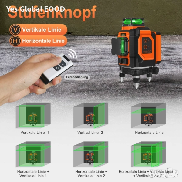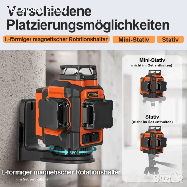 Лазерни линии: 12 (3x360° – хоризонтални и вертикални)
